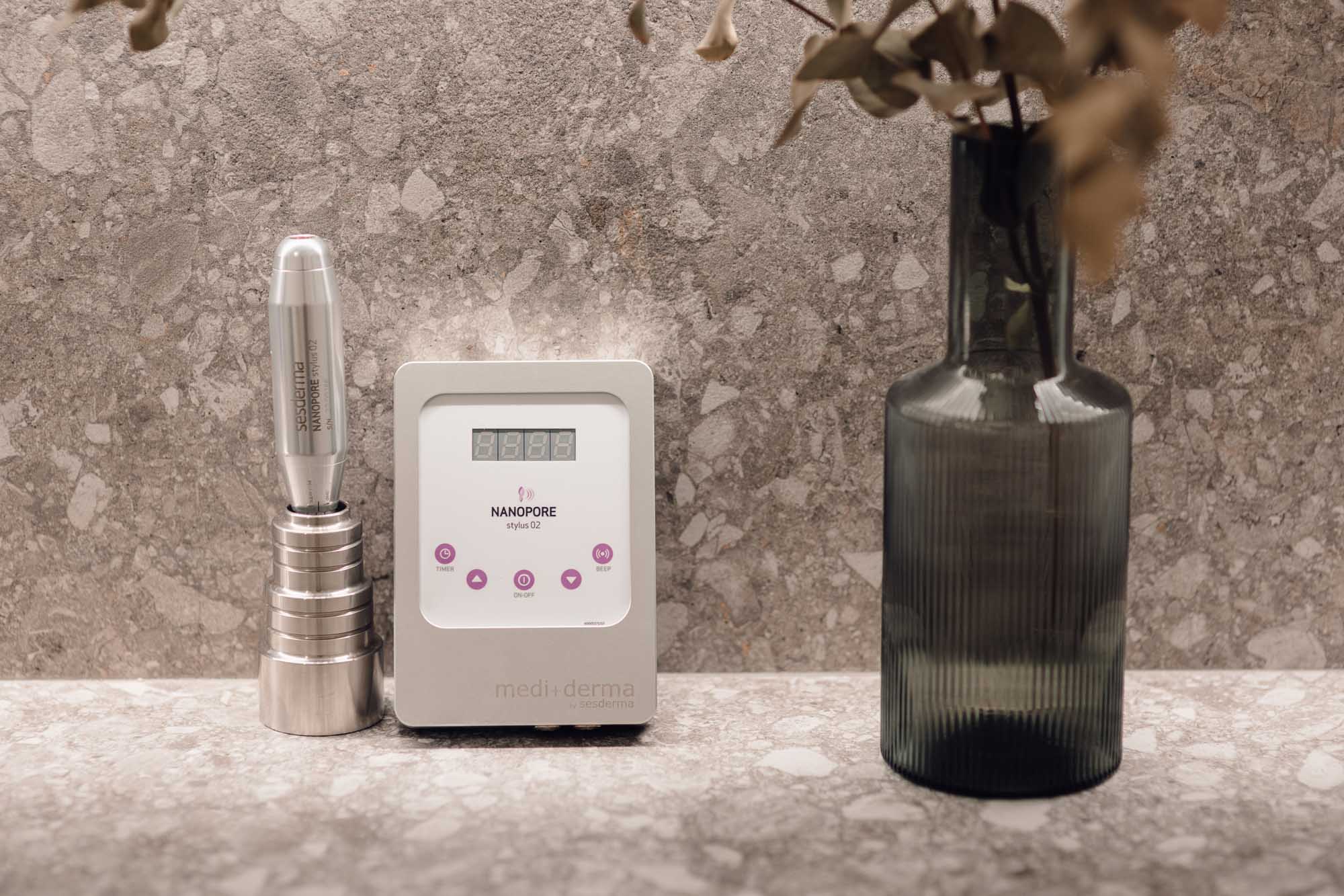 Nanopore es un dispositivo de microneedling o punción eléctrica , minimamente invasivo que, a través del módulo de agujas impulsadas por un motor eléctrico de máxima precisión, permite por un lado la penetración de los principios activos en la epidermis y por otro induce y regenera el colágeno y la elastina de la piel.